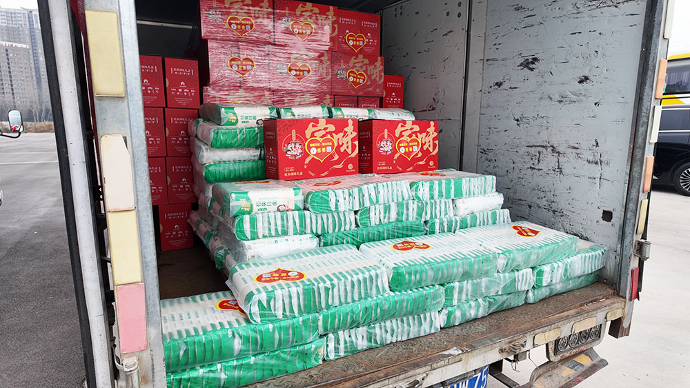 活动现场,货车整齐排列,车厢里堆满了精心采购的米、面、油等生活物资,每一件都承载着沉甸甸的关怀,在冬日里透着实实在在的暖意。